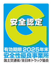 当社は、全日本トラック協会より「安全性優良事業所(Gマーク)」の認定を受けております(対象事業所:印西営業所・袖ヶ浦営業所・千葉営業所)。