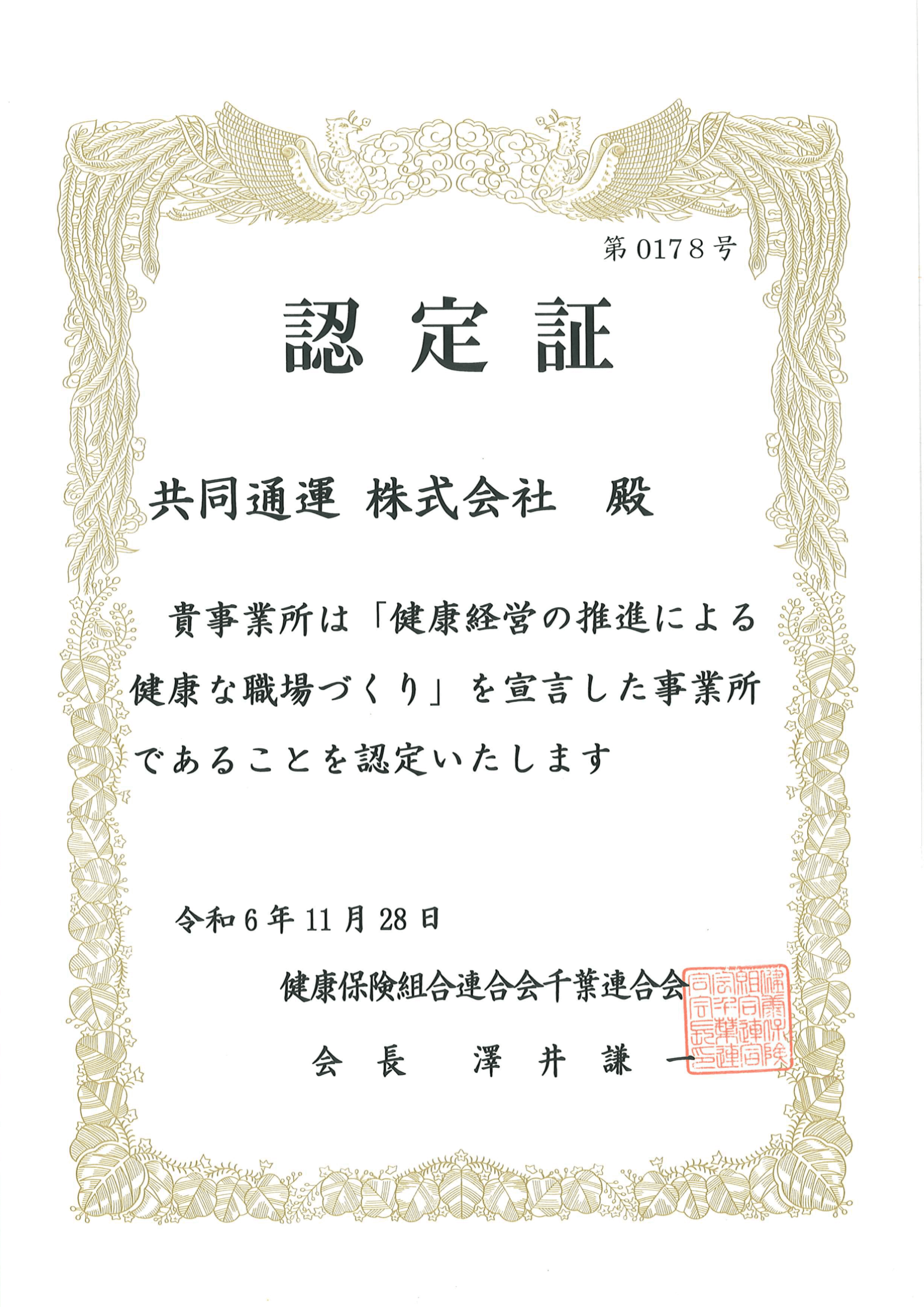 共同通運は、従業員の健康管理を経営課題と捉え、健康増進に真摯に取り組みます。