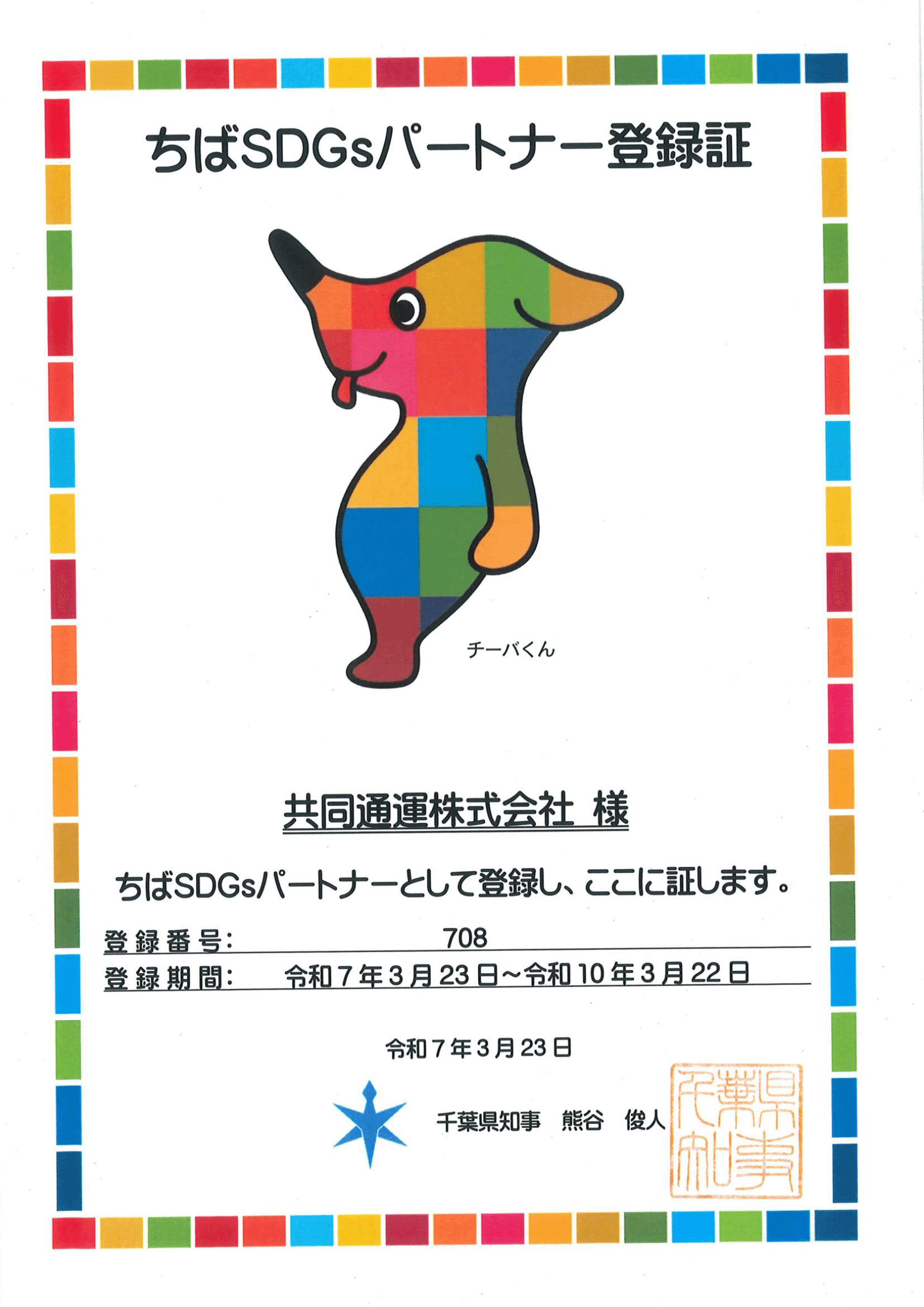共同通運は「ちばSDGsパートナー」に登録しました。